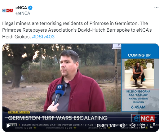 The Primrose Ratepayers Association's David-Hutch Barr said they've had issues with illegal miners for the past two years.